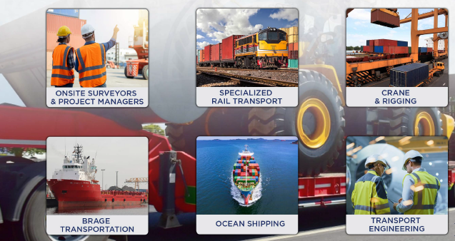 , heavy trailers, rail cars , barges, and truck transporters for over sized heavy and proeject cargoes.